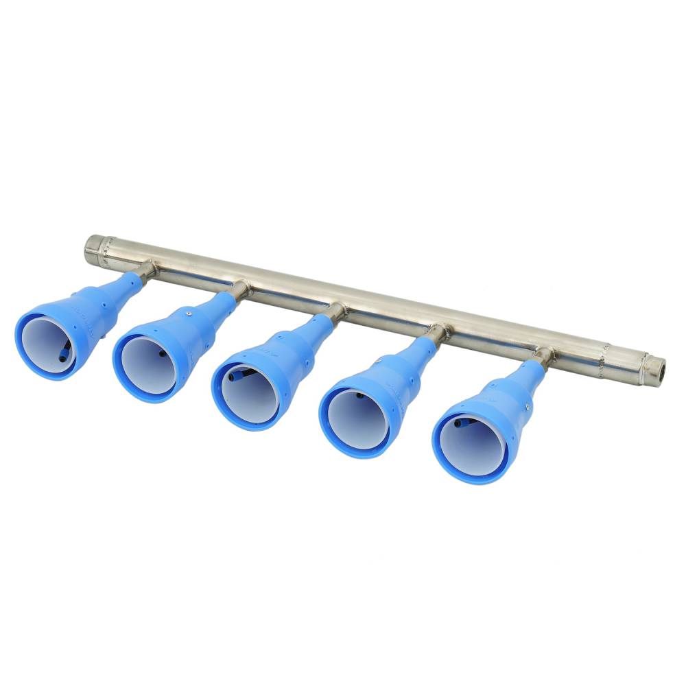 而在某些特定领域行业生产线(酒 饮料灌装线)上,两只风刀对吹风力相互抵消,会产生干燥盲区,用于风刀体型较大,安装时受到护栏的阻挡无法靠近干燥目标所以需要配备更大功率的鼓风机,这在能源消耗上造成了一定长度的浪费,而现在所推出的新型旋转风刀使得上诉问题迎刃而解。这是一种新型风刀也可以根据用户需求作为气枪喷嘴使用,MV-50旋转喷嘴非常适合用来大面积或者大范围除水,在工件加工粉尘吹除 塑料件除尘除水 金属加工除油等行业得到大规模使用。高效自动吹干风刀玻璃瓶除水吹干系统360度高速旋转喷气喷嘴.
